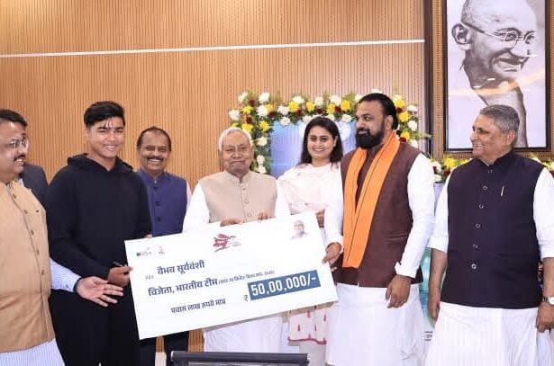 अंडर-19 विश्वकप के हीरो वैभव सूर्यवंशी हुए सम्मानित, मुख्यमंत्री नीतीश कुमार ने दिए 50 लाख रुपये