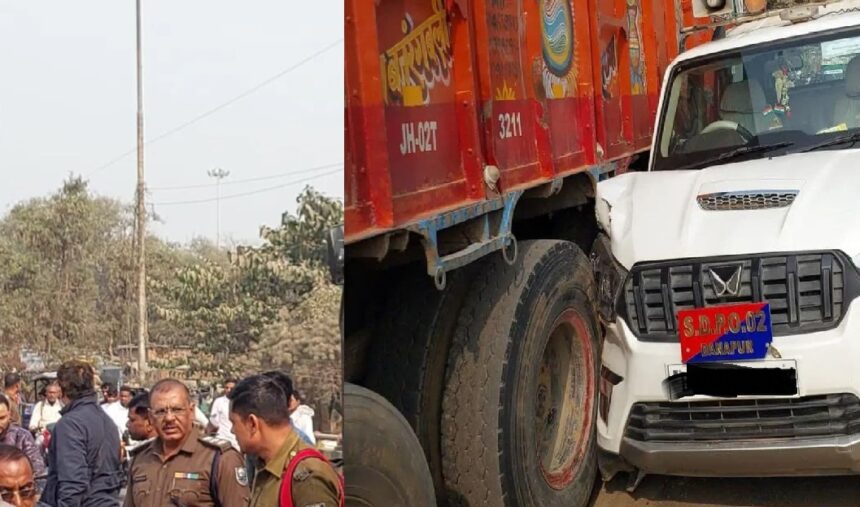 NEWS PR डेस्क: पटना के बिहटा थाना क्षेत्र में मंगलवार को उस वक्त हड़कंप मच गया, जब तेज रफ्तार बालू लदे एक ट्रक ने पहले बाइक सवार युवक को टक्कर मार दी और फिर भागने के दौरान दानापुर SDPO-2 की सरकारी गाड़ी से टकरा गया। इस हादसे में DSP अमरेंद्र कुमार झा बाल-बाल बच गए। घटना रेलवे ओवरब्रिज के पास हुई।