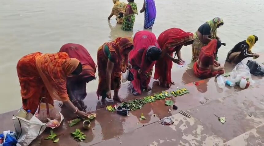 जितिया पर्व के नहाए-खाए पर गंगा घाटों पर उमड़ी महिलाओं की भीड़, प्रशासन ने की कड़ी सुरक्षा व्यवस्था।