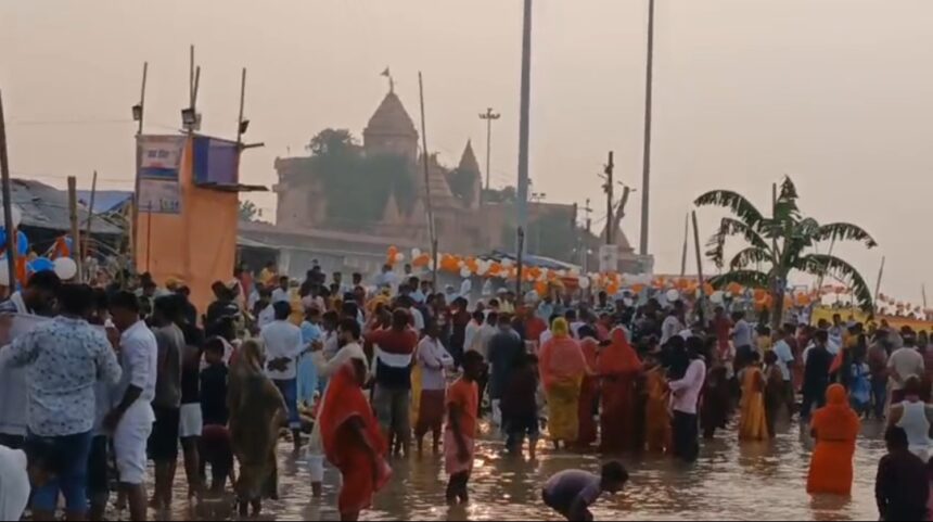 NEWS PR DESK- भागलपुर सुल्तानगंज के अजगैबीनाथ धाम में लोक आस्था का महापर्व को लेकर अस्तगामी सूर्य को अर्घ्य देने के श्रद्धालुओं की भीड़ उत्तरवाहिनी गंगा घाट में उमड़ पड़ी है.आपको बताते चलें कि लोक आस्था का महापर्व के पहली अर्घ्य अस्तगामी सूर्य को अर्घ्य देने के लिए छठ व्रती महिलाएं अजगैविनाथ के उत्तरवाहिनी गंगा घाट में उतर कर अस्तगामी सूर्य को अर्घ्य देते हुए हाथ में फल प्रसाद लेकर अस्तगामी सूर्य को अर्घ्य देने के लिए हजारों श्रद्धालुओं की भीड़ उमड़ गई है।