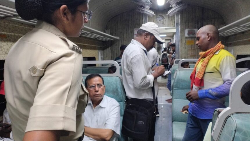 जिससे ₹80,475/- का जुर्माना वसूला गया यह गहन टिकट जांच अभियान वाणिज्य निरीक्षकों, टिकट जांच कर्मचारियों एवं रेलवे सुरक्षा बल (RPF) के सहयोग से सफलतापूर्वक संचालित किया गया इसके साथ ही यात्रियों को ‘यूटीएस ऑन मोबाइल’ ऐप (UTS on Mobile’ App) एवं ‘रेलवन’ ऐप ( ‘RailOne’ App) के माध्यम से डिजिटल टिकट खरीदने की सुविधा के बारे में जागरूक किया गया। उन्हें इन सुविधाजनक माध्यमों का उपयोग कर टिकट बुक करने हेतु प्रेरित किया गया, जिससे कतार में लगने की परेशानी से बचा जा सके और स्वच्छ एवं पर्यावरण अनुकूल यात्रा अनुभव को बढ़ावा दिया जा सके मालदा मंडल द्वारा सभी यात्रियों से मान्य एवं उचित टिकट लेकर यात्रा करने की अपील की जाती है।