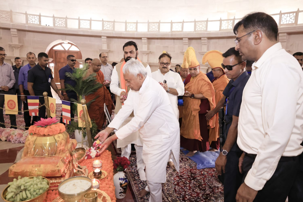 मुख्यमंत्री ने बुद्ध सम्यक दर्शन संग्रहालय सह स्मृति स्तूप से प्राचीन मृदा धातु स्तूप जाने के रास्ते का फीता काटकर उद्घाटन किया। मुख्यमंत्री ने बुद्ध सम्यक दर्शन संग्रहालय सह स्मृति स्तूप परिसर में शिलापट्टों पर उत्कीर्ण कराये गये बौद्ध प्रतीकों के अर्थ एवं उपदेशों का भी अवलोकन किया। इस दौरान मुख्यमंत्री ने स्मृति स्तूप के भू-तल पर अधिष्ठापित भगवान बुद्ध की पूजा-अर्चना कर राज्य में सुख, शांति एवं समृद्धि की कामना की।
