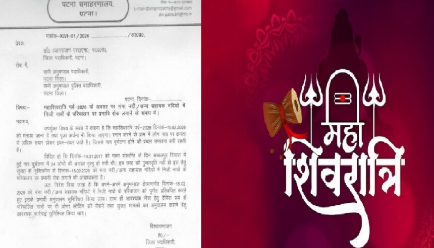 महाशिवरात्रि के दिन सरकारी कार्य में लगी नावों को छोड़कर नदियों में किसी भी अन्य नाव के परिचालन पर पूर्ण प्रतिबंध लगाया गया है। जिलाधिकारी, पटना ने साफ निर्देश दिए हैं कि आदेश का उल्लंघन करने वालों के खिलाफ सख्त दंडात्मक कार्रवाई की जाएगी।