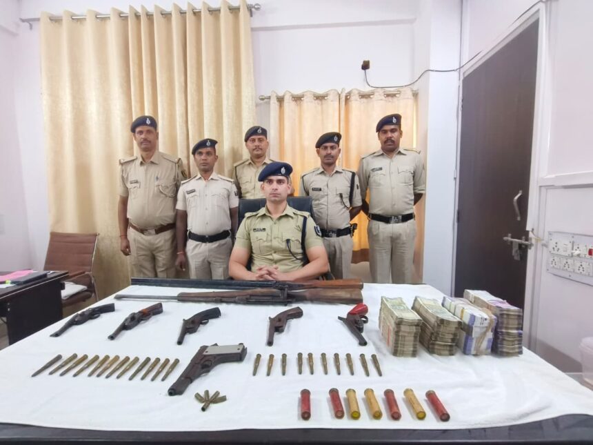 मिली जानकारी के अनुसार बताया जा रहा है कि आसूचना संकलन के आधार पर की छापेमारी में 02 देशी कट्टा, 01 रायफल एवं 05 जिंदा कारतूस बरामद करते हुए 01 अभियुक्त को गिरफ्तार किया गया।