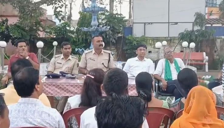 भागलपुर सुल्तानगंज थाना परिसर में थानाध्यक्ष मृत्युंजय कुमार की अध्यक्षता में दुर्गा पूजा को लेकर शांति समिति की बैठक आयोजित की गई इस बैठक में मुख्य अतिथि के रूप में नगर सभापति राज कुमार गुड्डू,थे विशिष्ट अतिथि के रूप में व्यवसाई संघ के अध्यक्ष सह राजद के वरिष्ठ नेता राजपति यादव , कोंग्रेस नेता विनय शर्मा, एस आई संजय कुमार थे बैठक में सभी दल के राजनीतिक संगठन के लोग एवं दुर्गा पूजा मंदिर के अध्यक्षों के साथ संयुक्त बैठक किया गया.