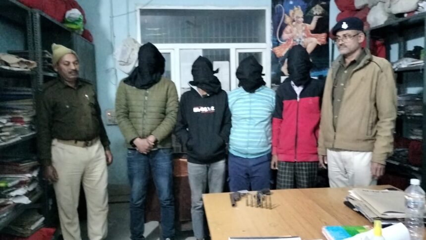 पुलिस को देखते ही मौके पर मौजूद सभी संदिग्ध अपराधी भागने लगे, लेकिन पुलिस टीम ने मुस्तैदी दिखाते हुए घेराबंदी कर सभी को पकड़ लिया। इसके बाद जब पुलिस ने उनकी तलाशी ली तो उनके पास से दो देसी कट्टा और छह जिंदा कारतूस बरामद किए गए।