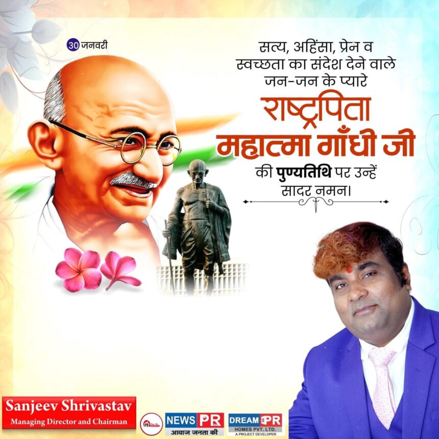 NEWS PR डेस्क : राष्ट्रपिता महात्मा गांधी की पुण्यतिथि के अवसर पर पल्लवी राज कंस्ट्रक्शन के चेयरमैन एवं मैनेजिंग डायरेक्टर संजीव श्रीवास्तव ने उन्हें भावभीनी श्रद्धांजलि अर्पित की। इस अवसर पर उन्होंने महात्मा गांधी के सत्य, अहिंसा, प्रेम और स्वच्छता के आदर्शों को याद करते हुए कहा कि गांधीजी के विचार आज भी समाज और राष्ट्र को सही दिशा दिखाने वाले दीपस्तंभ हैं।
