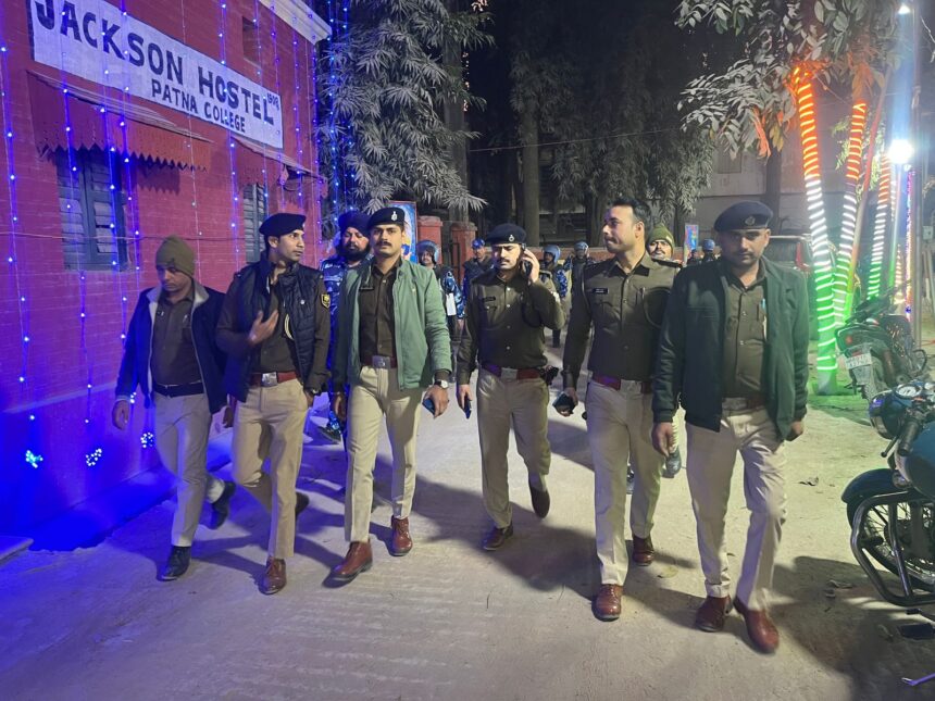 NEWS PR डेस्क : सरस्वती पूजा को शांतिपूर्ण और सुरक्षित माहौल में संपन्न कराने के लिए पटना जिला प्रशासन सक्रिय मोड में दिखाई दे रहा है। इसी क्रम में गुरुवार को पीरबहोर थाना पुलिस ने पटना यूनिवर्सिटी के सभी प्रमुख हॉस्टलों में व्यापक स्तर पर फ्लैग मार्च किया। सुरक्षा व्यवस्था की इस कवायद ने पूरे यूनिवर्सिटी कैंपस का माहौल बदल दिया।