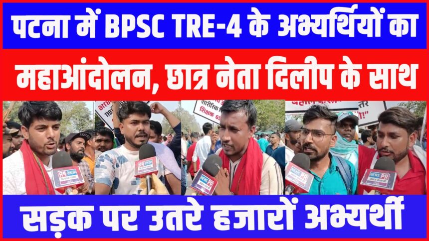 NEWS PR डेस्क: पटना: बिहार शिक्षक भर्ती परीक्षा (BPSC TRE-4) के नोटिफिकेशन में लगातार देरी के चलते राजधानी पटना में छात्र आंदोलन तेज हो गया है। आज पटना कॉलेज परिसर से शुरू हुए पैदल मार्च में हजारों छात्र मुख्य सड़कों पर प्रदर्शन करते हुए अपनी मांगों को सरकार और आयोग तक पहुंचाने का प्रयास करते दिखे। हाथों में तख्तियां और नारों के साथ छात्र शांतिपूर्ण लेकिन दृढ़ अंदाज में अपनी नाराजगी जताते नजर आए।