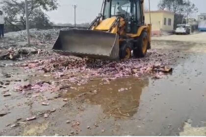 बिहार के गोपालगंज में अवैध शराब पर चला बुलडोजर, 12 हजार लीटर जब्त शराब किया गया नष्ट