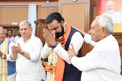 touches Nitish Kumar’s feet and seeks his blessings; stakes claim to form government