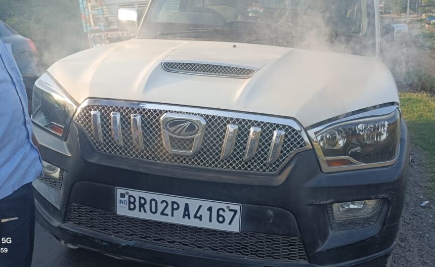 गया-बोधगया मार्ग पर चलती स्कॉर्पियो में लगी आग, तीन लोग बाल-बाल बचे