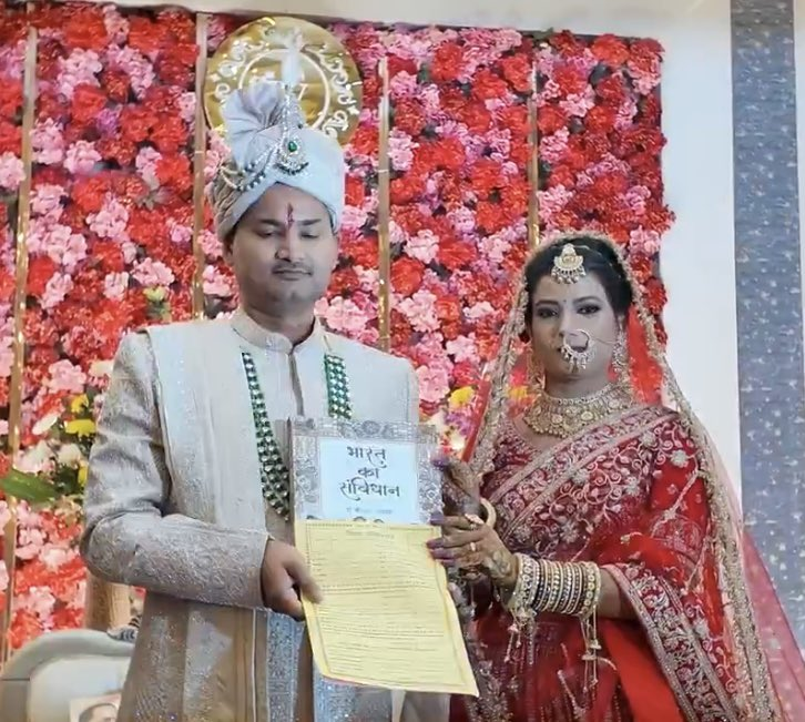 NEWS PR डेस्क: बिहार की राजधानी पटना में हुई एक अनोखी शादी इन दिनों सोशल मीडिया पर चर्चा का विषय बनी हुई है। यादव समाज से आने वाले एक शिक्षित और प्रशासनिक सेवा से जुड़े जोड़े ने पारंपरिक रीति-रिवाजों की बजाय भारतीय संविधान को साक्षी मानकर विवाह किया।