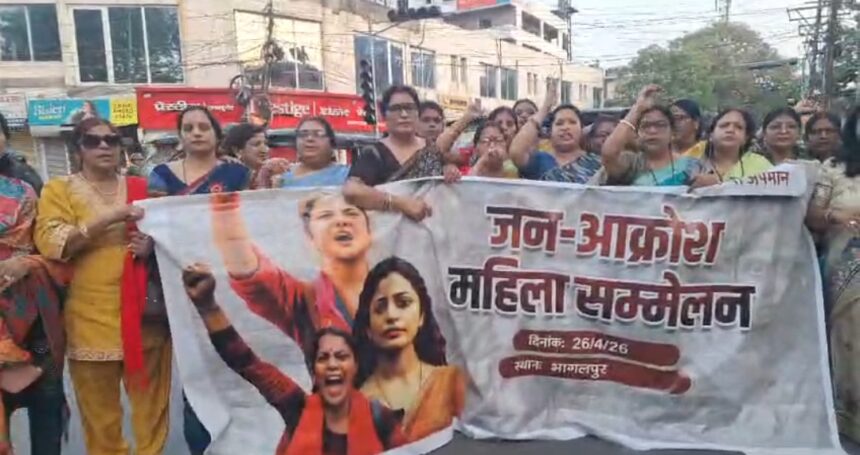 नारी सम्मान और अधिकारों को लेकर भागलपुर की सड़कों पर आज महिलाओं का गुस्सा खुलकर सामने आया। नारी शक्ति वंदन अधिनियम संशोधन को लेकर सियासत के बीच भाजपा और एनडीए से जुड़ी महिला कार्यकर्ताओं ने आक्रोश रैली निकालते हुए जोरदार प्रदर्शन किया। रैली में बड़ी संख्या में महिलाओं ने हिस्सा लिया और हाथों में तख्तियां लेकर विपक्ष के खिलाफ जमकर नारेबाजी की। प्रदर्शनकारियों का आरोप था कि नारी शक्ति से जुड़े इस अहम मुद्दे पर विपक्ष भ्रामक बयानबाजी कर रहा है, जिससे महिलाओं की गरिमा को ठेस पहुंच रही है।